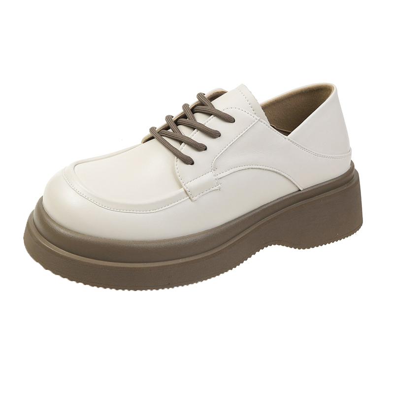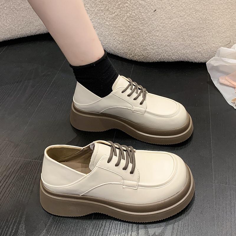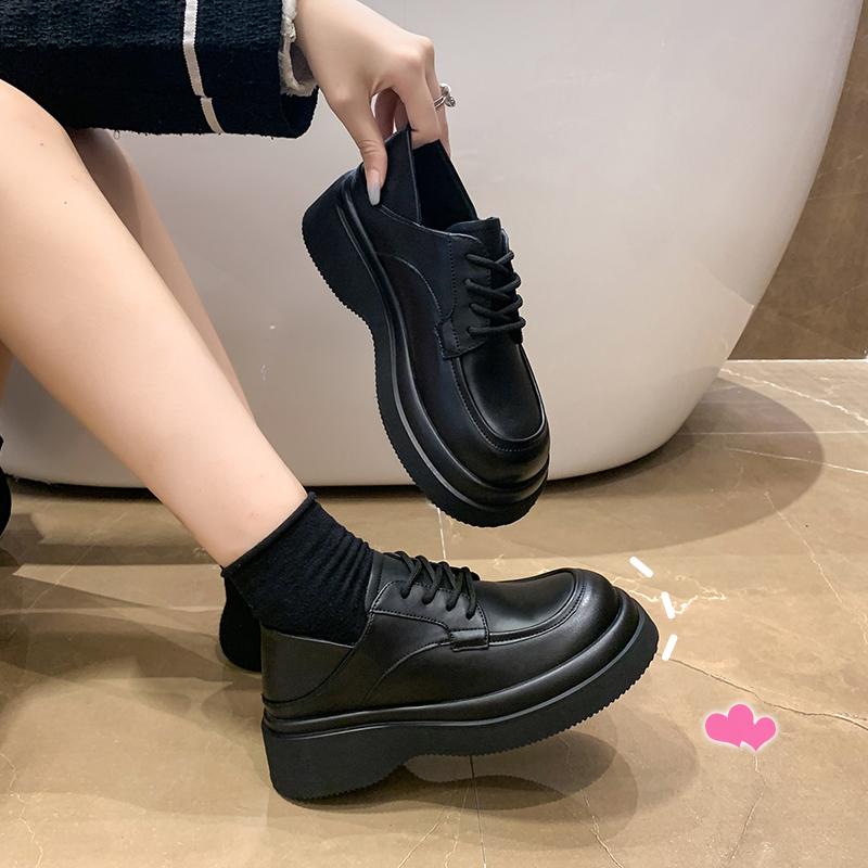 2024 весенне-осенние новые женские оксфорды, повседневная обувь на платформе, черная кожаная обувь на шнуровке, модная обувь на плоской подошве с круглым носком и массивной подошвой