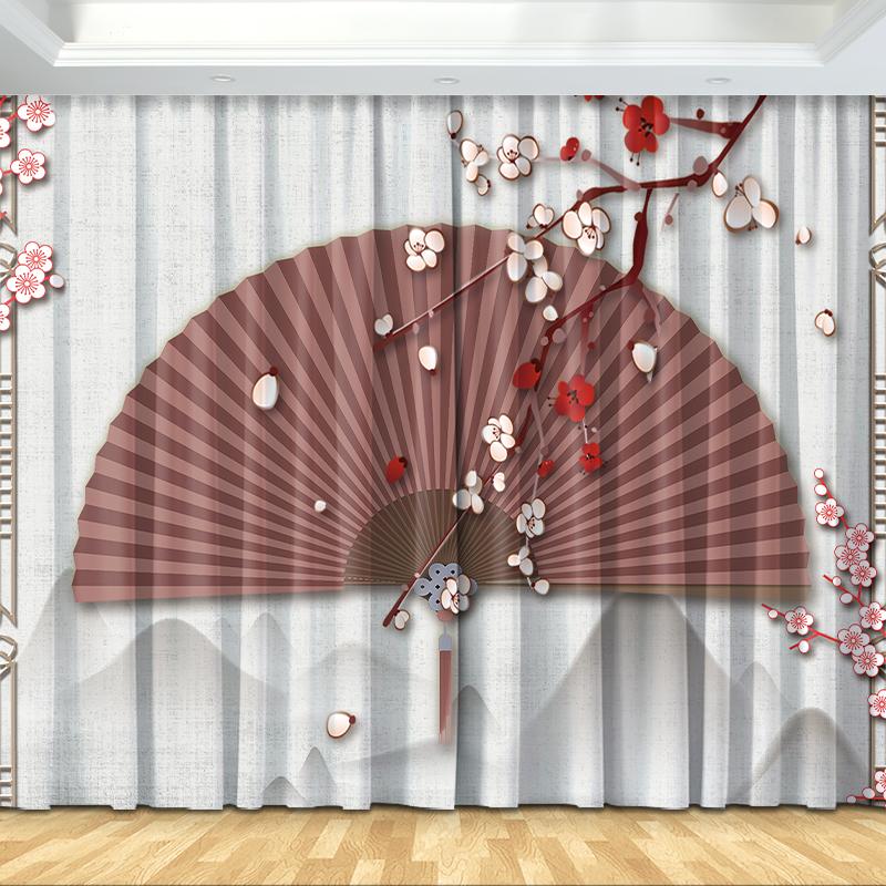 Новая китайская занавеска Японский пейзаж Полутеневая занавеска Печатный крючок для штор Спальня Гостиная Кухня Пол Окно Занавеска