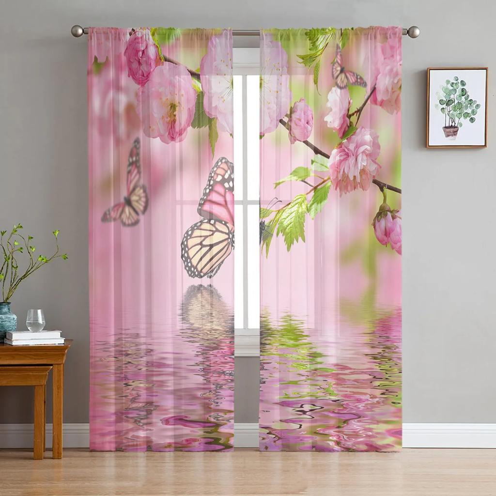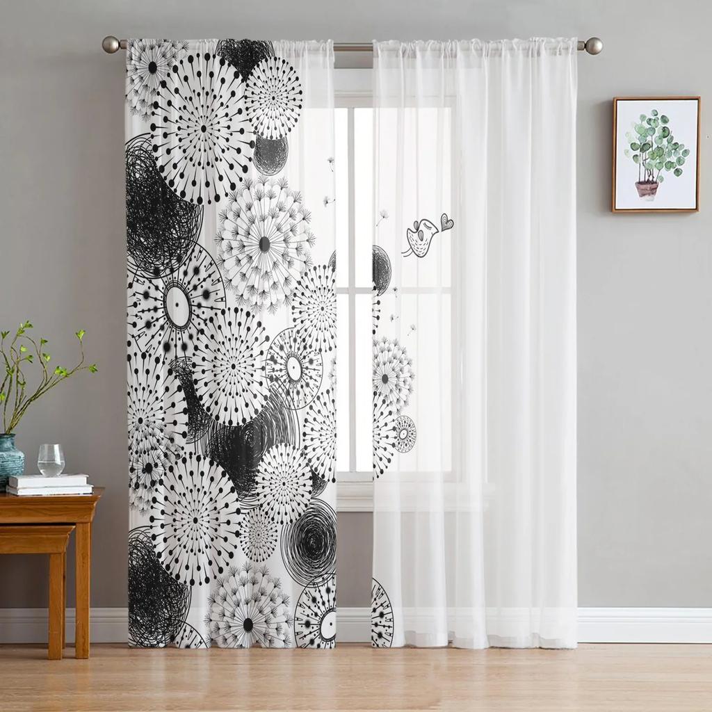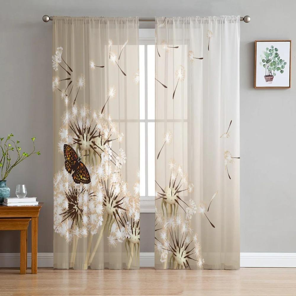Одуванчик, бабочка, цветок, растение, шифоновые прозрачные шторы для гостиной, спальни, украшение, оконная вуаль, тюлевые шторы, занавеска