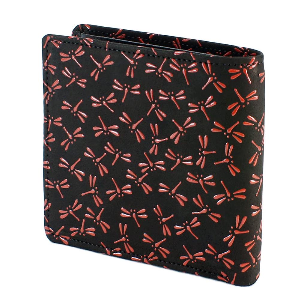 Inden Bifold Billfold Coin Кошелек Черный x Красный Узор Стрекоза [Indenya] Кошелек, Кошелек, J, В комплекте, Оленья кожа, Лак, 2006-21-008