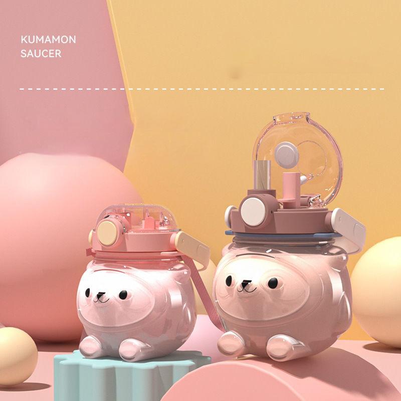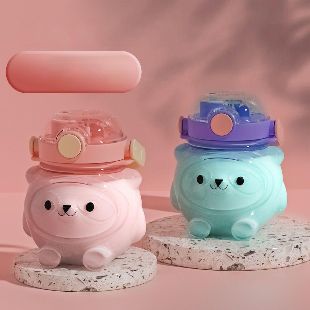 Летний пластиковый стаканчик для воды с медведем, большая чашка для живота, переносная чашка-непроливайка с защитой от падения, детский чайник большой емкости