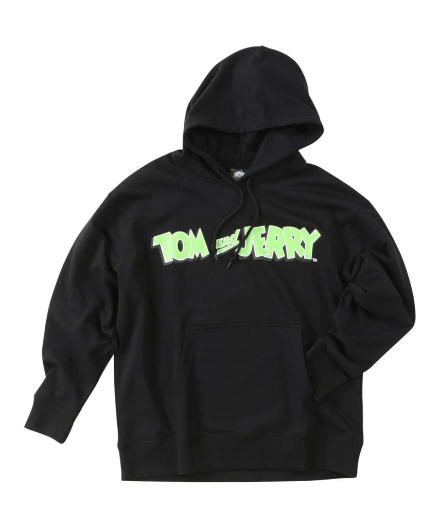 И толстовка с капюшоном флисовая принтованная парка черная [Tom Jerry] мужская