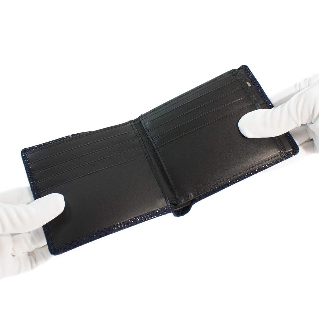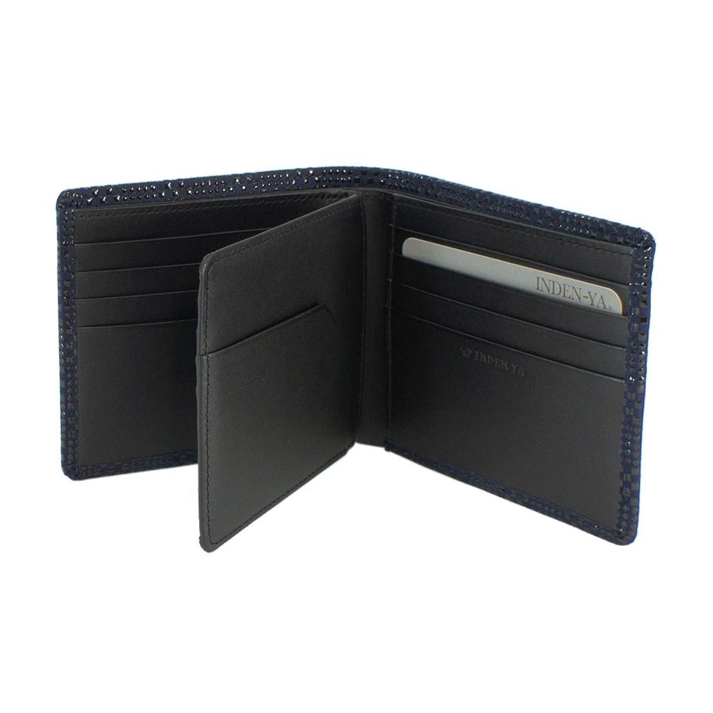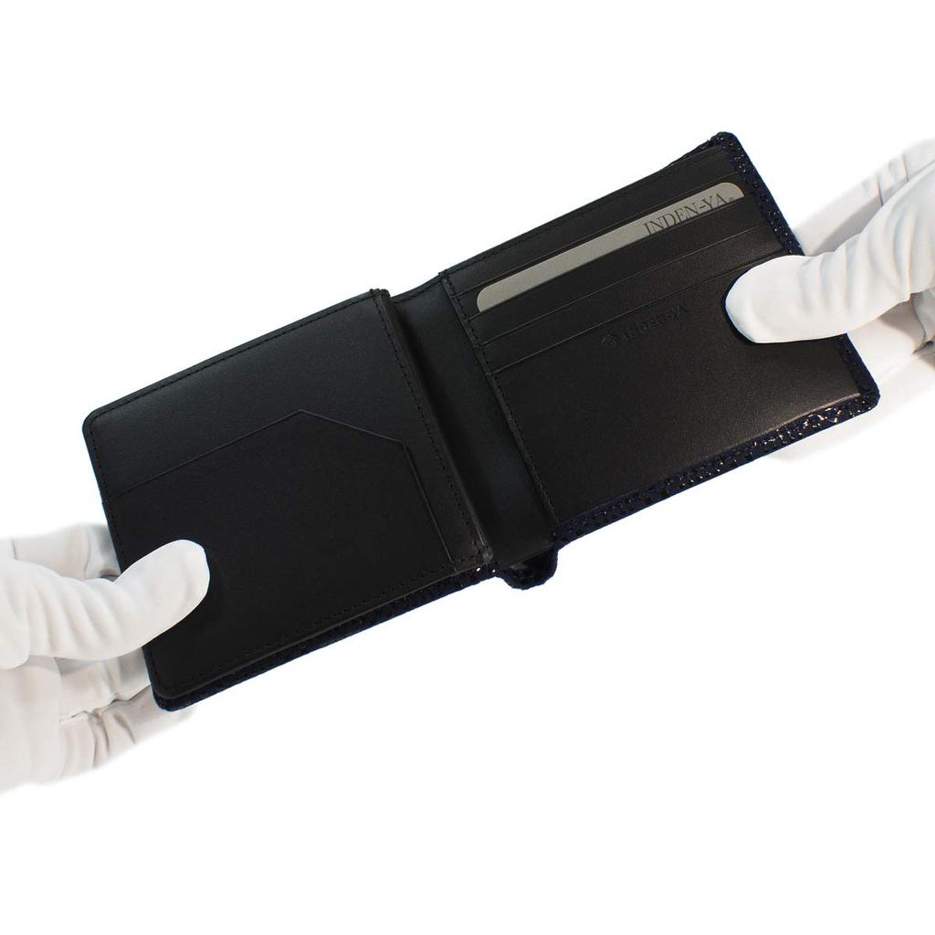 Внутри отделение для банкнот без отделения для монет, темно-синий x черный мелкий клетчатый узор [Indenya] складной кошелек, F, кошелек, оленья кожа, лак, 2009-04-167