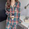 Зеленая рождественская пижама, пижамный комплект для пары, простая клетчатая пижама, хлопок, осень-зима, женская пижама, костюм с длинным рукавом, домашняя одежда
