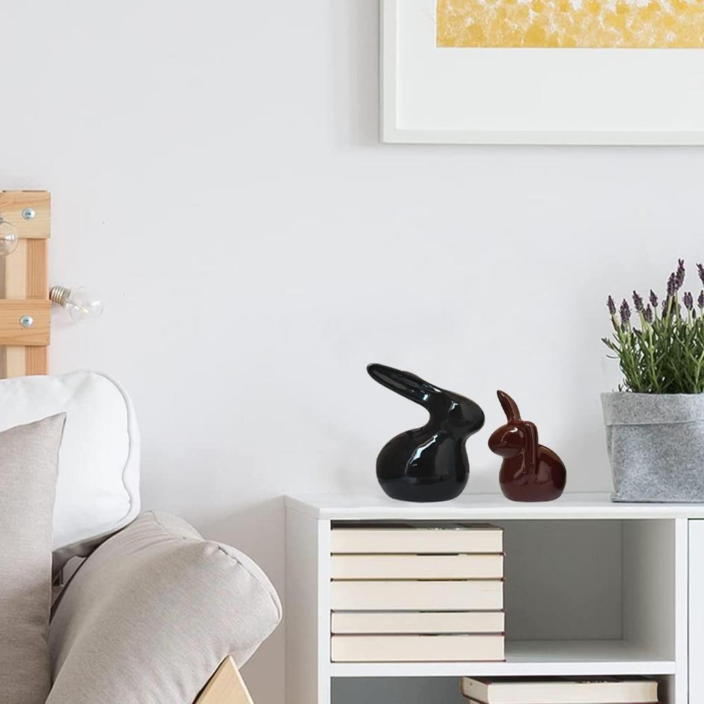 Керамические фигурки кроликов для домашнего декора (Набор из 2 шт., черный и коричневый)