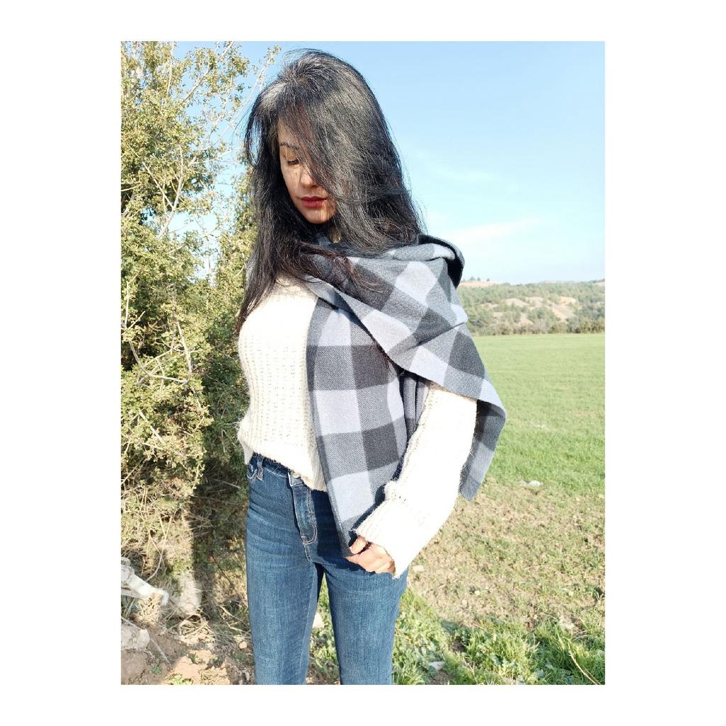 Fleece Scarf, Checkered Scarf, Plaid Scarf, Neck Collar, Thick Scarf, Navy Blue Scarf
