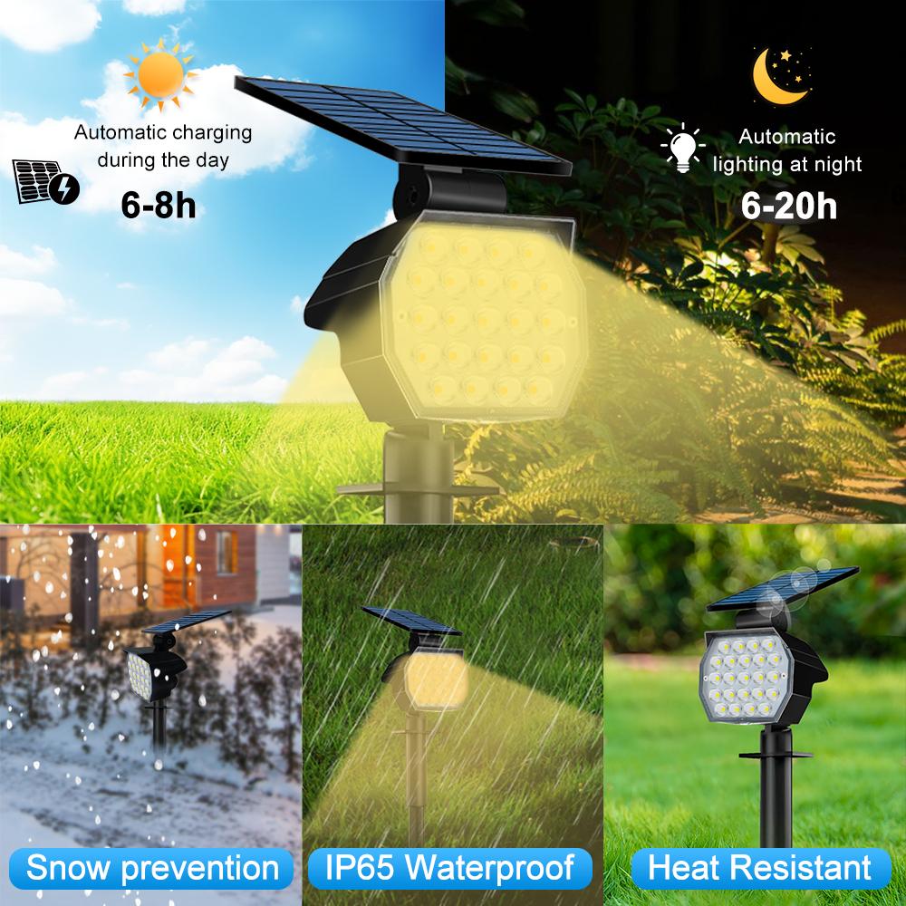 23 светодиодных солнечных прожектора, уличные водонепроницаемые регулируемые ландшафтные прожекторы, прожекторы на солнечных батареях, садовая настенная дорожка