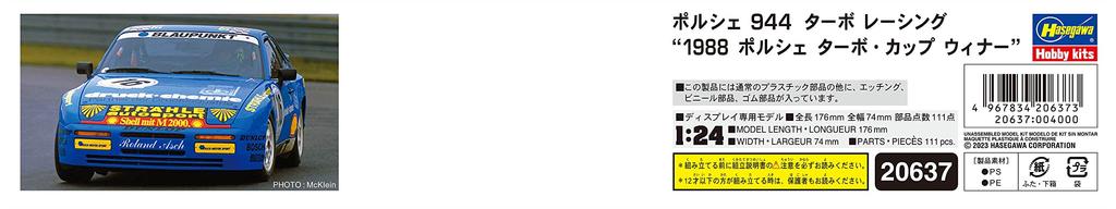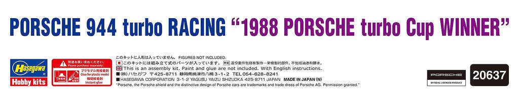 Hasegawa Porsche 944 Turbo Racing 1988 Porsche Turbo Cup Winner Пластиковая модель 20637 1/24