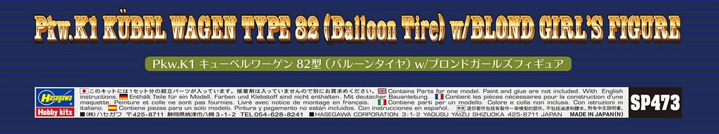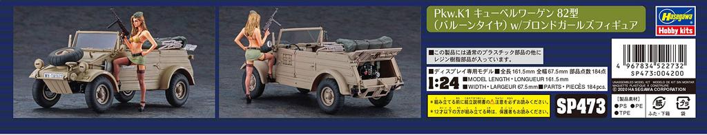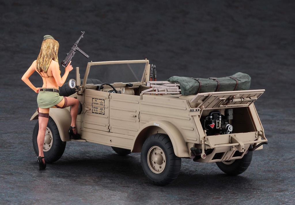 Hasegawa Пластиковая фигурка девушки Kubelwagen Type 82 SP473 1/24 Pkw.K1 (Шина-баллон) с блондинкой
