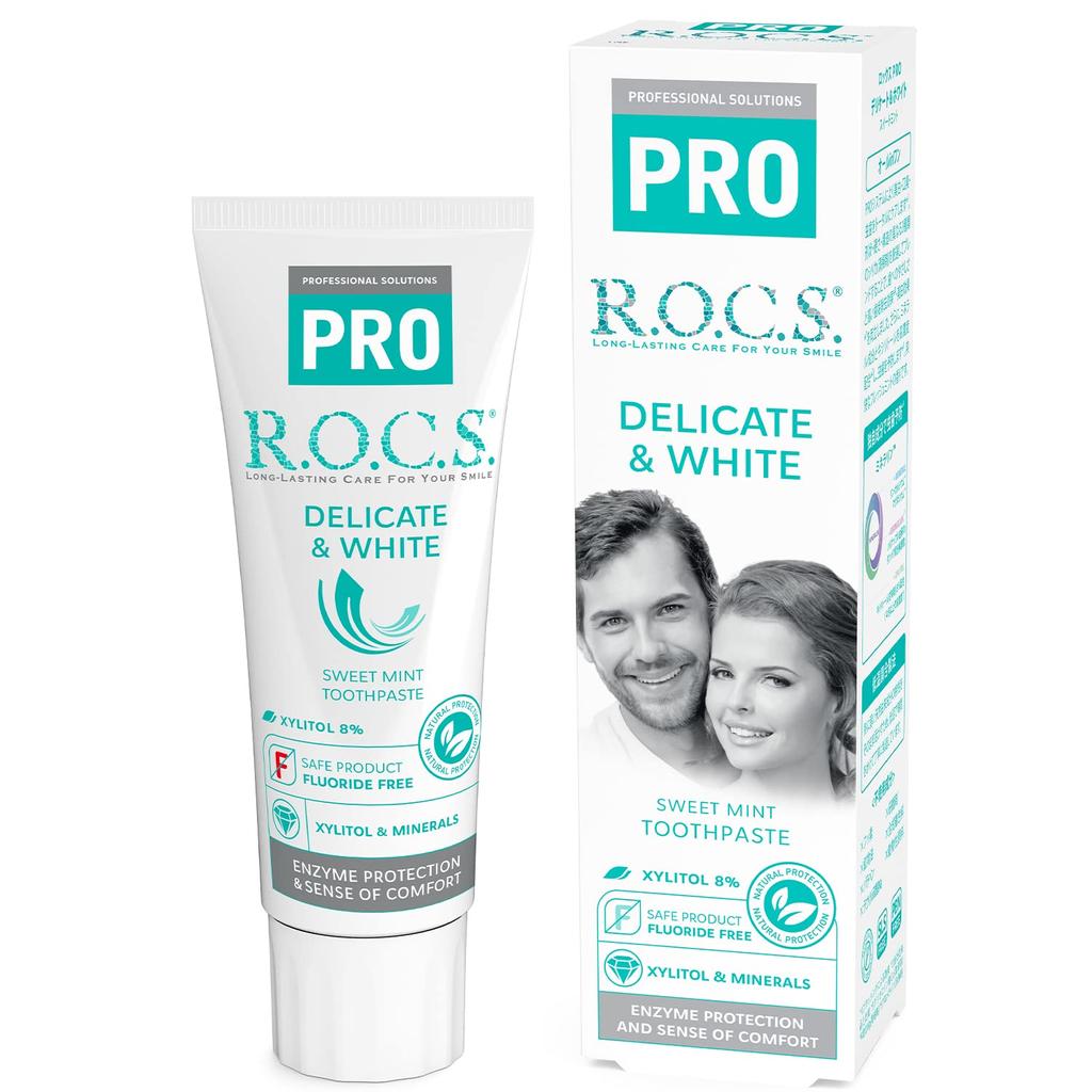 Зубная паста Rocks PRO Delicate White Sweet Mint Whitening с энзимами 94 г ROCS. & [Полный уход] — купить товар онлайн с бесплатной доставкой по всему миру!