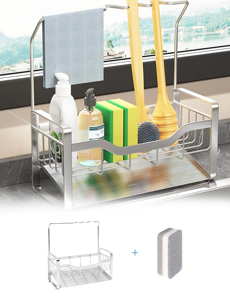 Держатель для губки из нержавеющей стали 304, подставка для губки для кухонной раковины, держатель для хранения губки, в комплекте моющее средство для посуды/скребок/губка, устойчивая к ржавчине