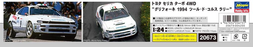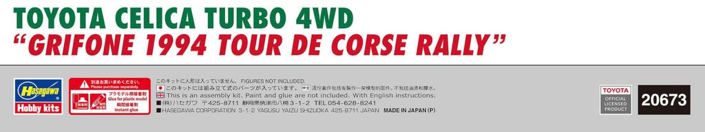 Hasegawa Toyota Celica Turbo 4WD Griffine 1994 Ралли Тур де Корс Пластиковая модель 20673 1/24