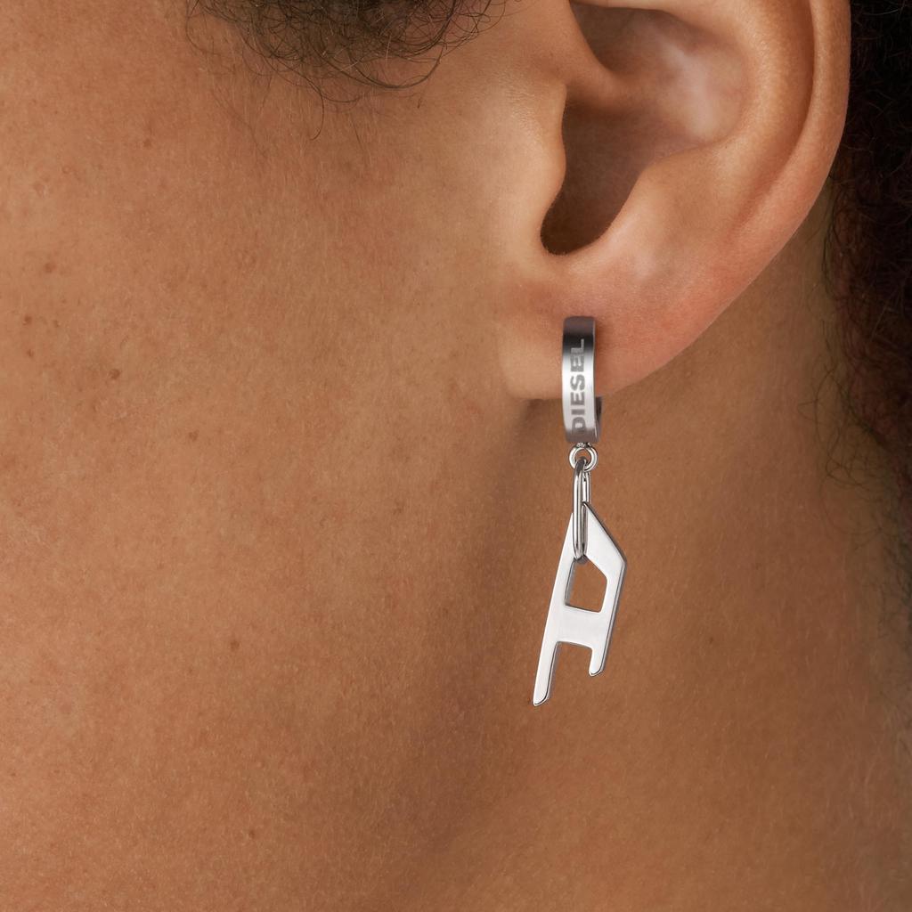 Diesel Серьги для мужчин из стали 38 мм, серебряные, нержавеющая сталь, серьги из нержавеющей стали, без украшений DX1336040, сталь,