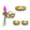 Сверкающие пайетки и перья: Этот комплект, выполненный из высококачественных пайеток и перьев, излучает мерцающее очарование, которое привлекает внимание и добавляет гламурный штрих любому наряду.
