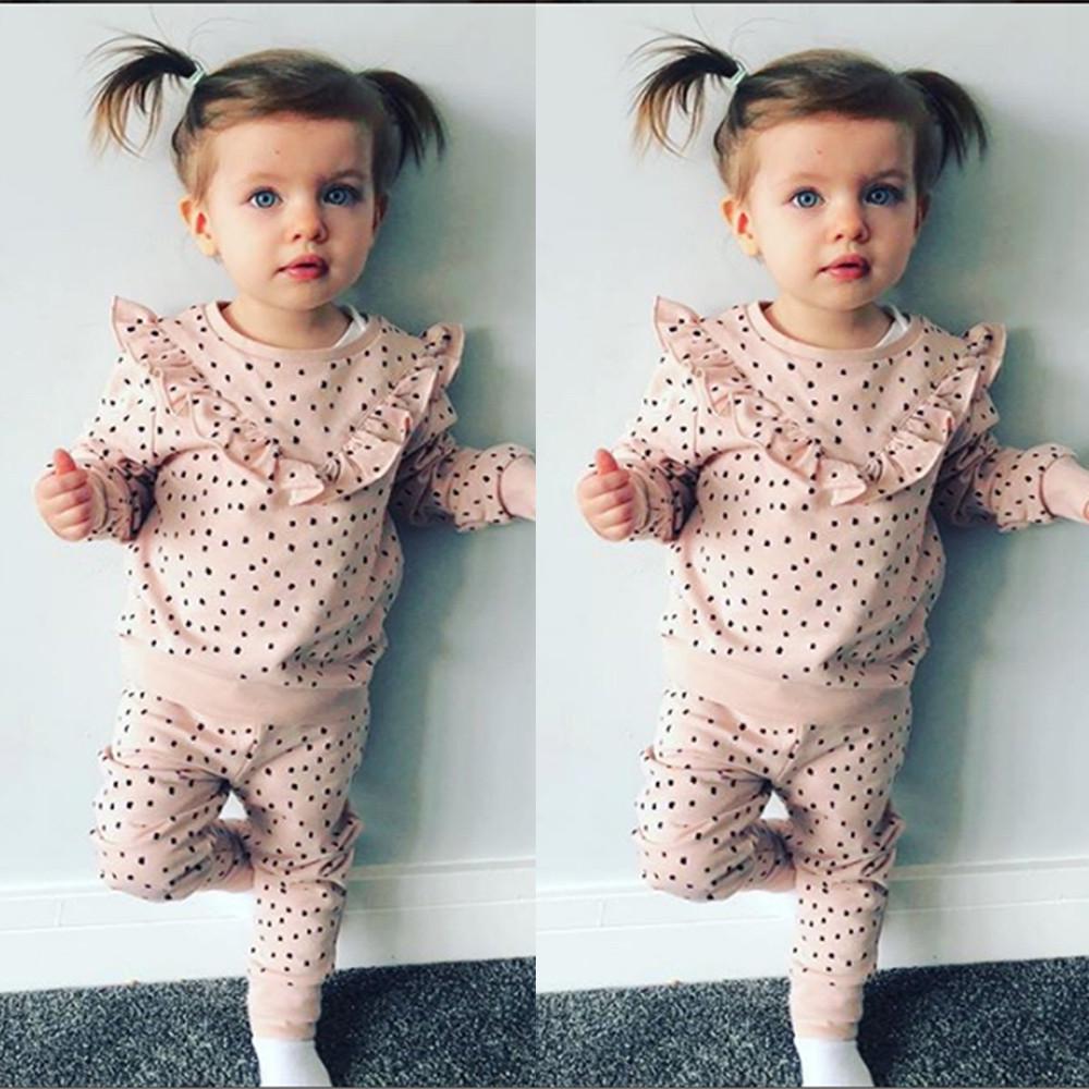 Футболка с рюшами в горошек для маленьких девочек, топы, брюки, комплект одежды — купить товар онлайн с бесплатной доставкой до всему миру!