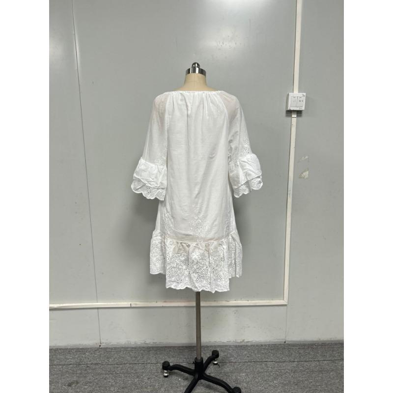 Летняя юбка темперамент пригородный однотонный свободный белый кружевной пригородный стиль праздничное платье