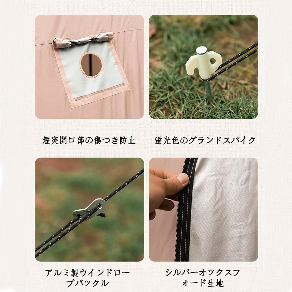 [Всесезонная палатка]: В стандартной конструкции палатки мы добавляем юбку снаружи, чтобы предотвратить проникновение зимнего ветра и снега внутрь и обеспечить вам комфорт.. Внутри палатки есть дымоходное отверстие, поэтому вы можете развести костер внутри палатки.. Эту палатку можно легко установить в зависимости от сезона, например, для семейного кемпинга, летнего кемпинга, кемпинга на открытом воздухе, предотвращения чрезвычайных ситуаций и т. д.