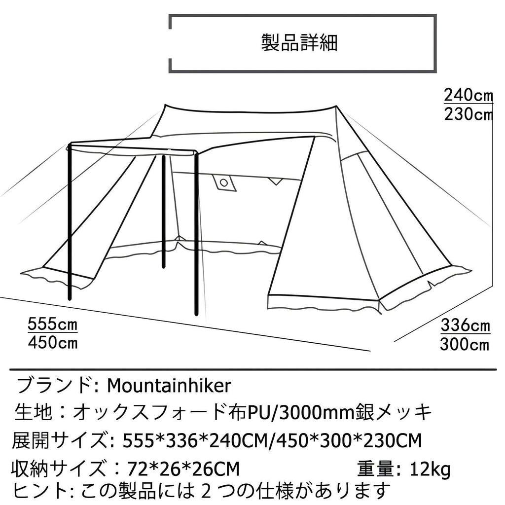 [Характеристики продукта]: Размер в разложенном виде составляет приблизительно: длина примерно 555 см, ширина 336 см, высота 240 см, размер для хранения примерно: 72см*26см*26см, вес примерно 12кг