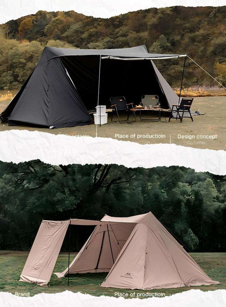 [Улучшение дверного занавеса]: Мы удлинили дверное полотно на основе оригинального дверного полотна.. При использовании он обеспечивает больше затененного пространства, а также может использоваться в качестве проекционного экрана во время ночного кемпинга.. Вы сможете больше наслаждаться природой