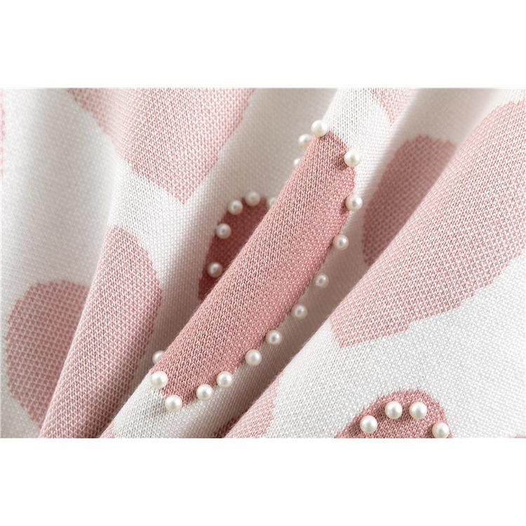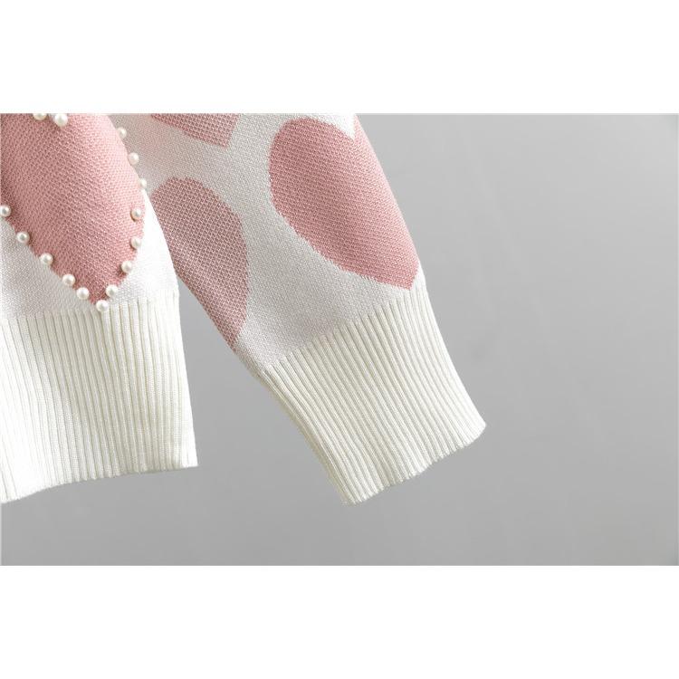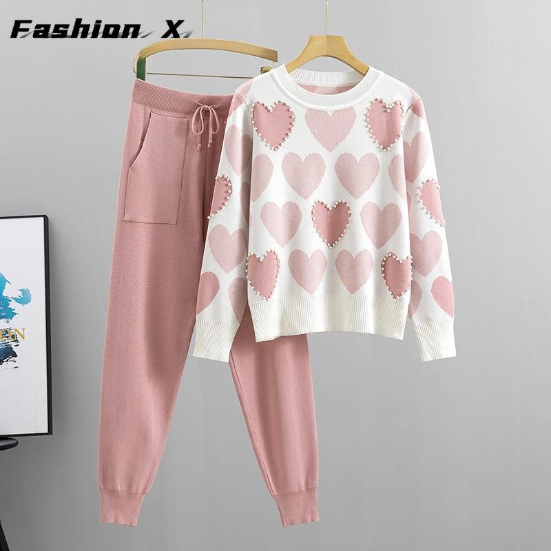 Весенне-осенний женский вязаный костюм с бусинами, темпераментный модный свежий вязаный топ и брюки в студенческом стиле, комплект из двух предметов