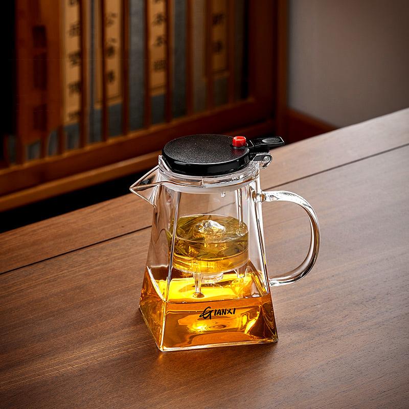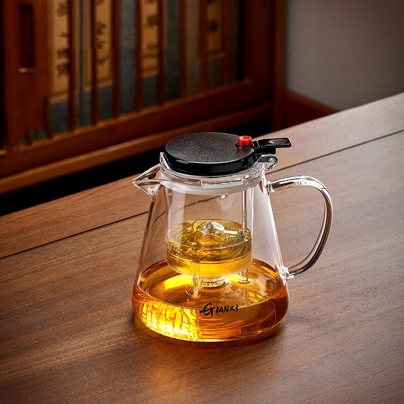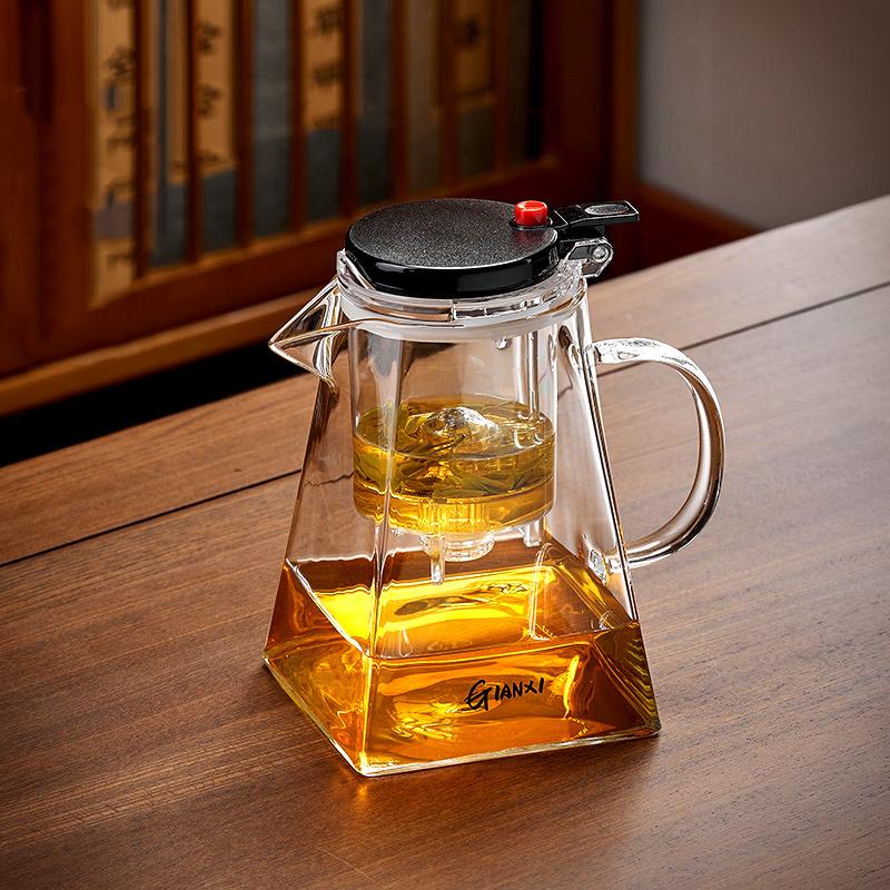 Утолщенный термостойкий стеклянный чайник, устойчивый к высоким температурам, бытовой чайник для фильтрации и разделения чая с одной кнопкой