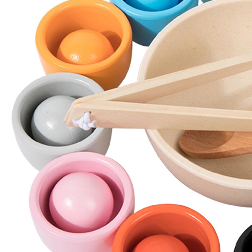 - 【Игрушки Монтессори】: Деревянные шарики в чашках — отличные игрушки Монтессори. Попробуйте разные способы использования чашек и шариков, чтобы помочь малышам сортировать цвета, сопоставлять их и считать.