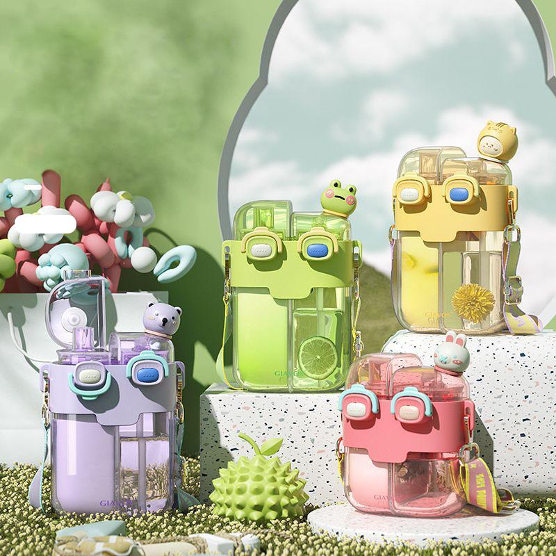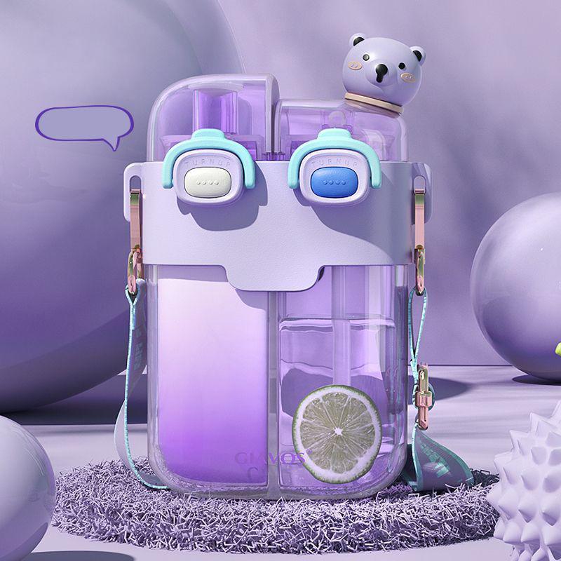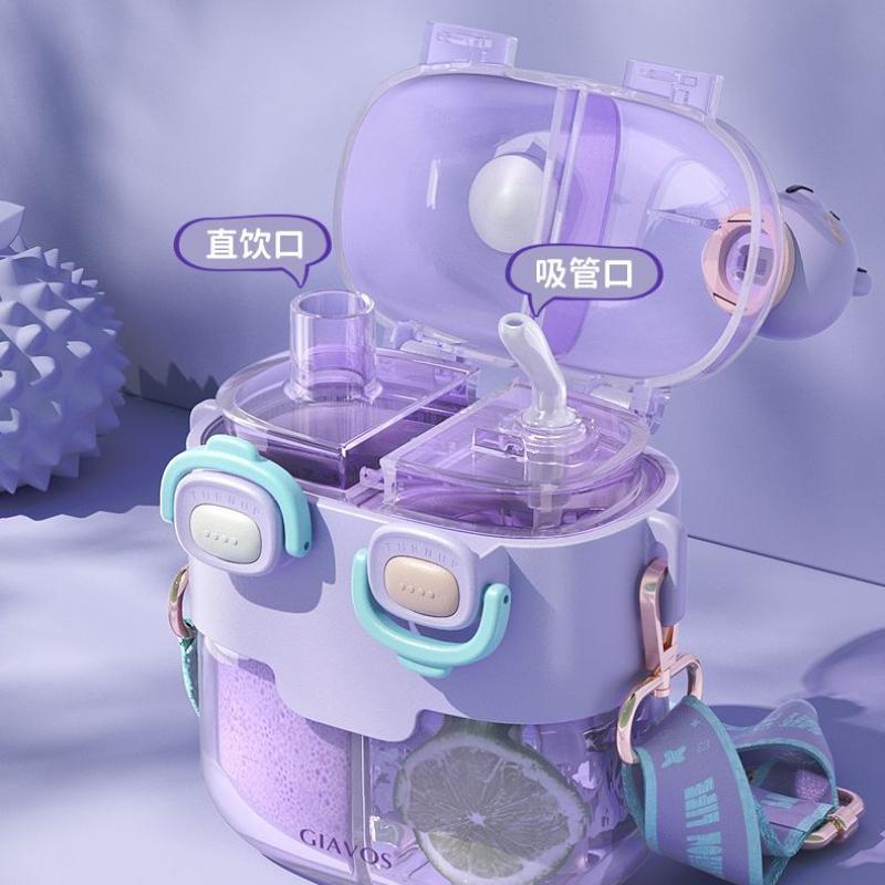 Бутылка для воды с рисунком для детей, двухсекционная чашка для питья, одна чашка для двух напитков, детская бутылка для воды с регулируемым ремешком
