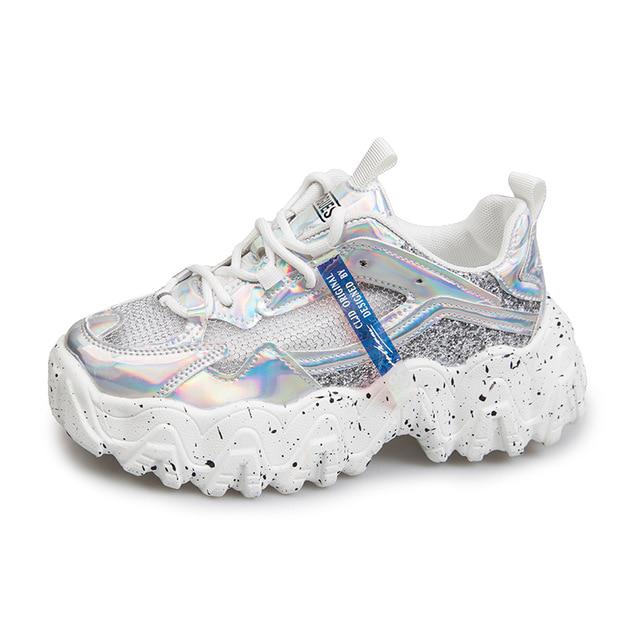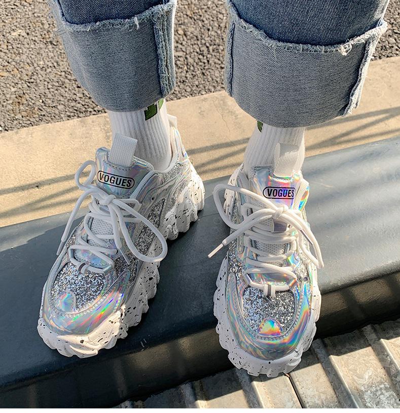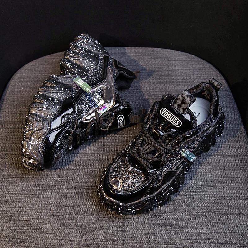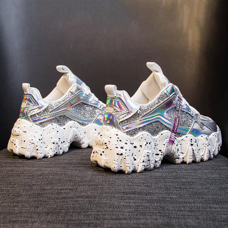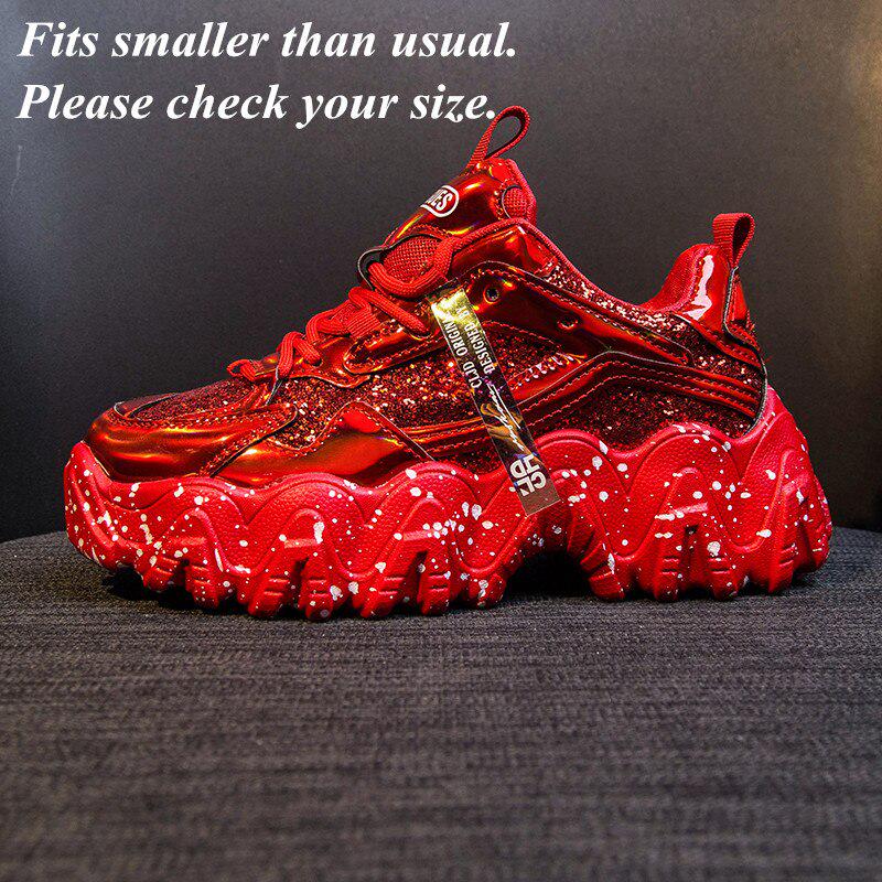 Модная женская обувь, кроссовки на массивной подошве для папы, удобные глянцевые кроссовки на толстой подошве на платформе с волнистым низом