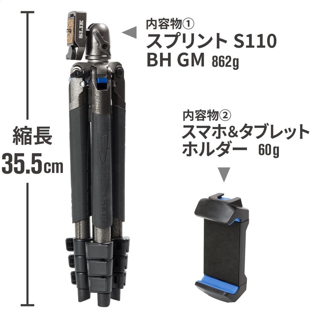 Специальный штатив для смартфона SLIK Sprint S110 BH GM, держатель для смартфона и планшета, 4-рычажный замок, совместимый с шириной башмака для аксессуаров 160961, цвет оружейный металлик