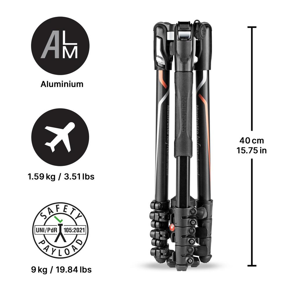 Manfrotto Befree Advanced Aluminum Tripod Kit with Quick Release Plate for Sony and Tripod, 4-Section, Lever-Lock Type, L-Type 7 9 (MKBFRLA-BH)
