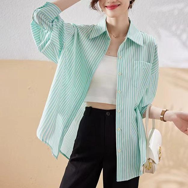 Полосатая рубашка, куртка, женская весенняя верхняя одежда, блузка с длинными рукавами, рубашка, весна и осень, повседневная, ленивая, ветреная, винтажная, базовая, офисная, повседневная женская рубашка
