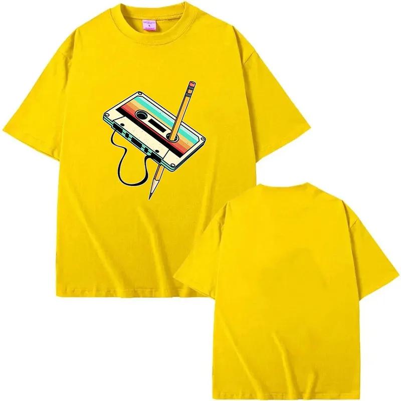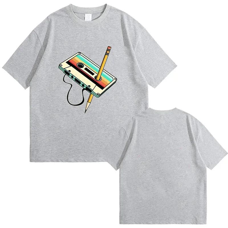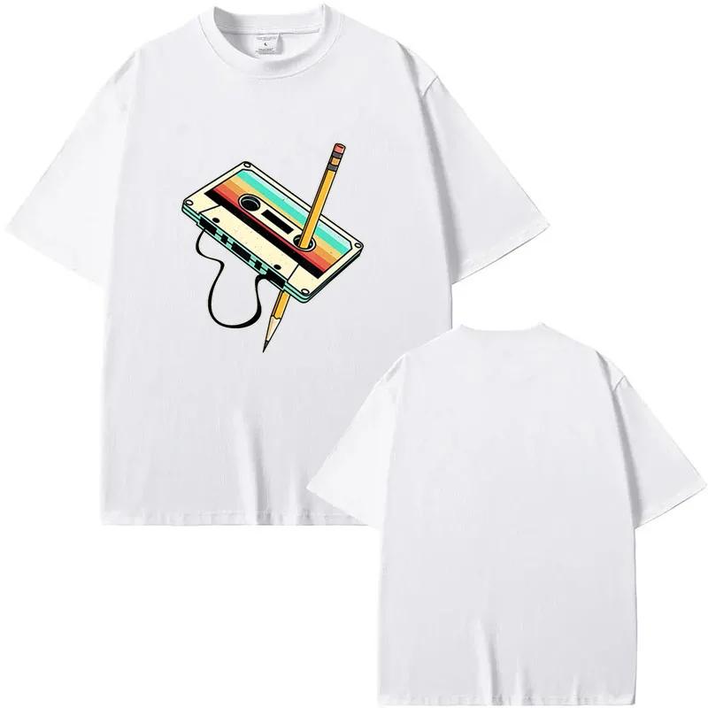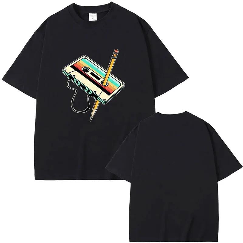 Женский унисекс-топ 80-х годов, кассетная лента, карандаш, ретро, винтажная музыка 1980-х годов, короткий рукав, женская одежда, винтажная футболка, Camisetas