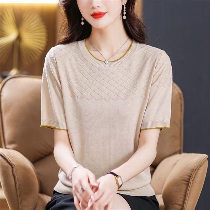 Летняя новая модная футболка для женщин с круглым вырезом, свободная и универсальная, женская трикотажная рубашка из ледяного шелка