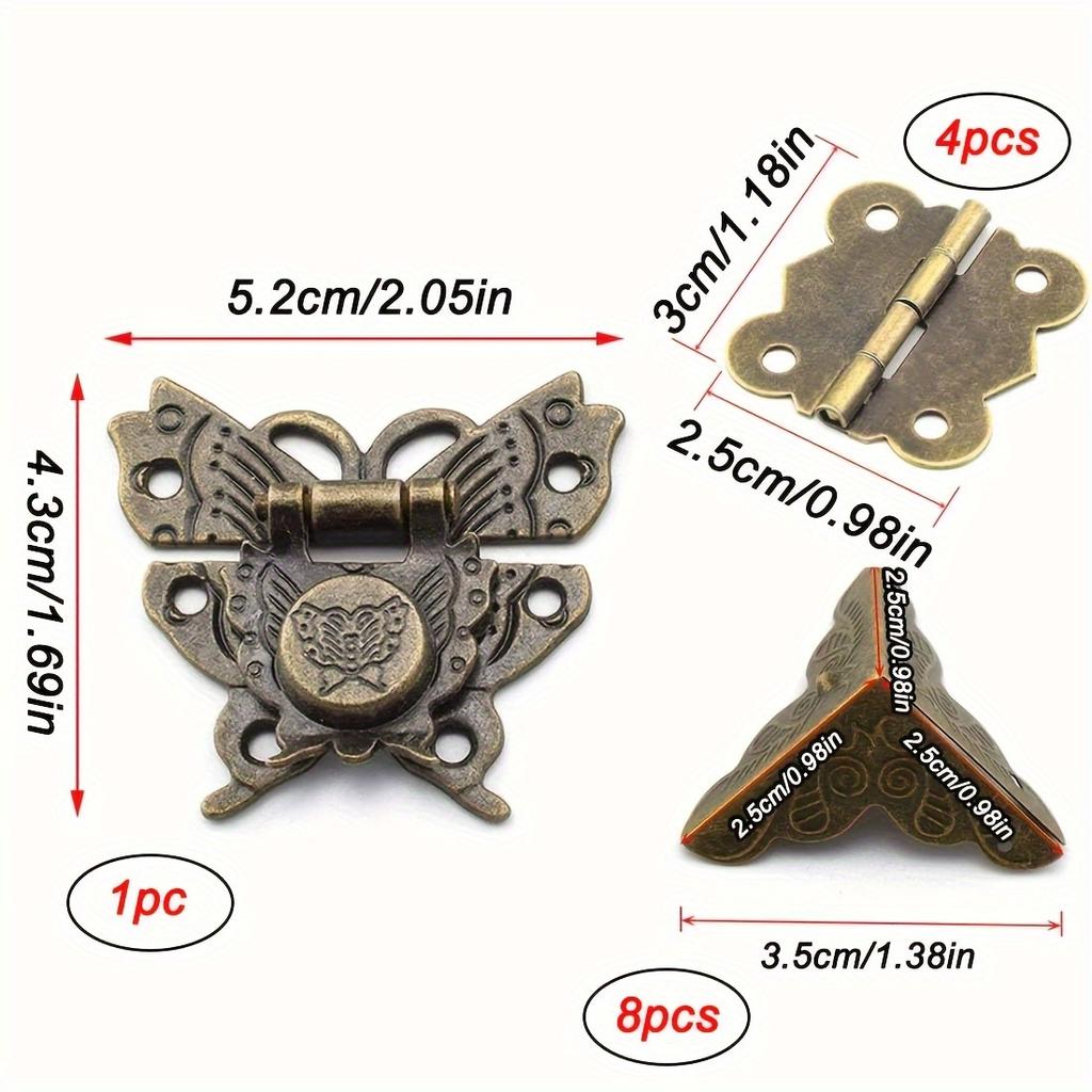 13 шт. антикварных защелок для шкатулок с петлями и защитными уголками в ассортименте, ретро-бронзовая защелка в форме бабочки
