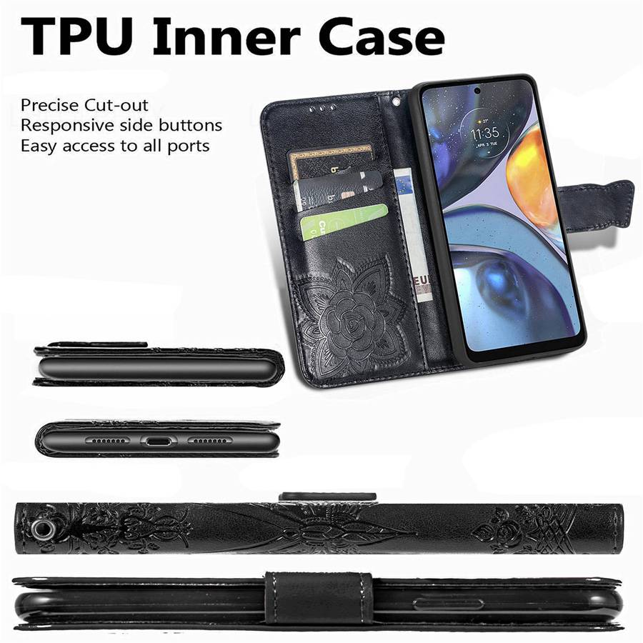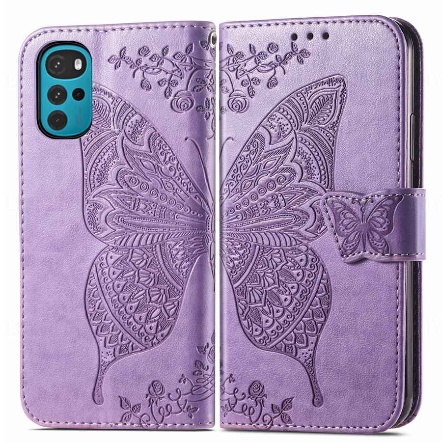 Кожаный чехол-книжка с рисунком бабочки для Motorola Edge 50 60 Fusion 40 Moto G62 G42 G32 G22 G72 G84 5G G53 G35 G82 G75 G73 G54 G55 G34