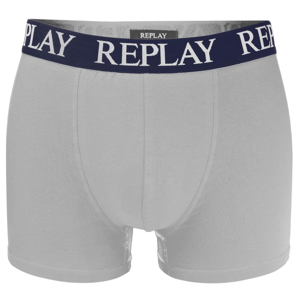 Replay Мужские Боксеры Темно-синий Серый N139 Хлопок Логотип 2 Шт. — купить товар онлайн с бесплатной доставкой по всему миру!