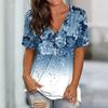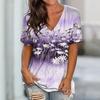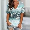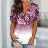 Летние цветочные градиентные 3D цифровые принты свободные повседневные футболки с короткими рукавами и V-образным вырезом женские