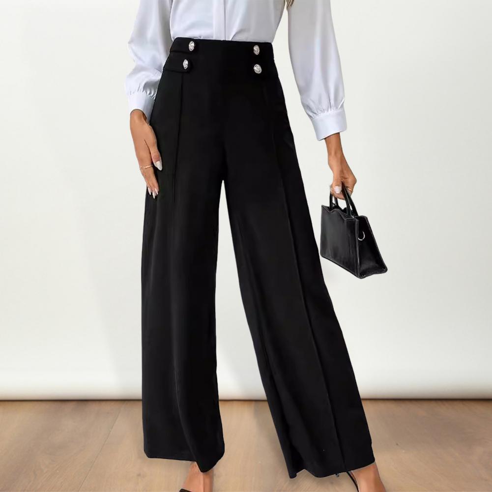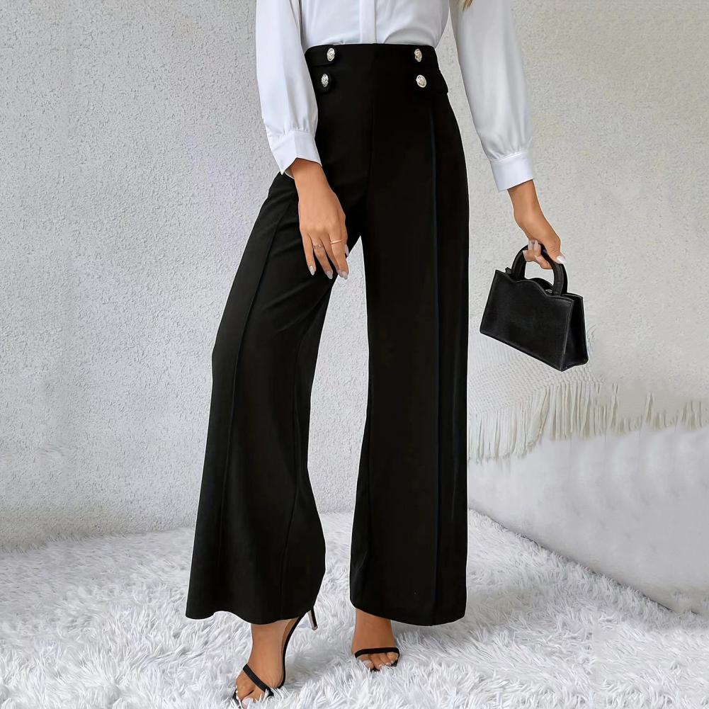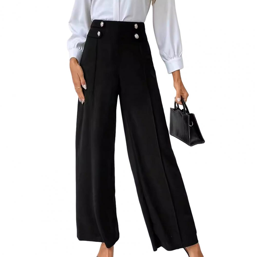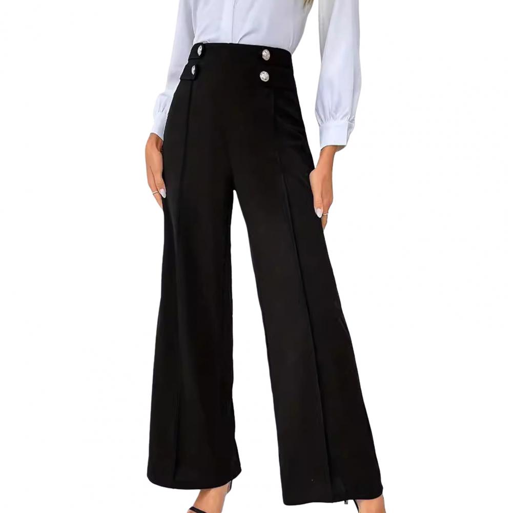 Весенние осенние брюки Стильные широкие брюки с высокой талией для женщин для работы Весна-осень с пуговицами Элегантные