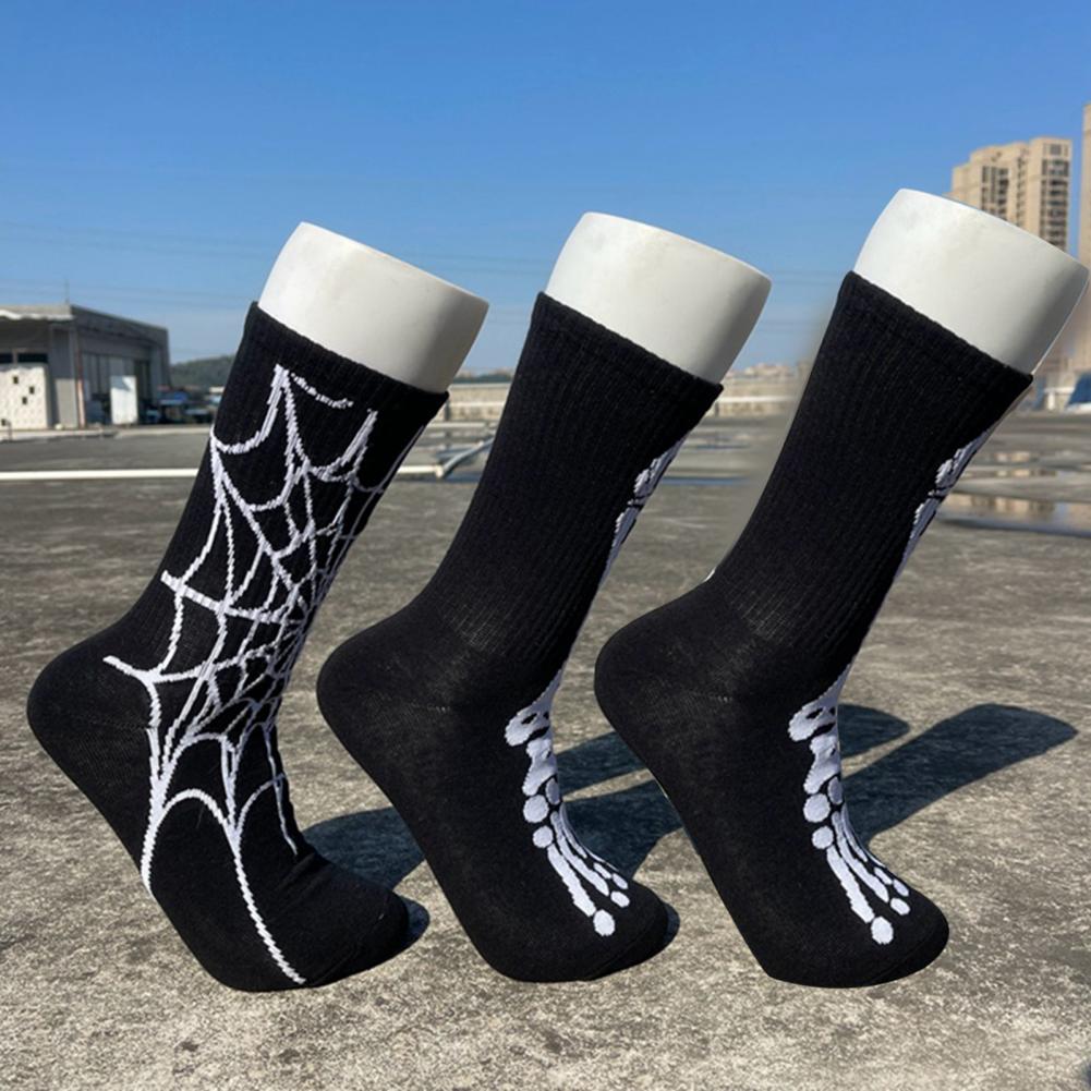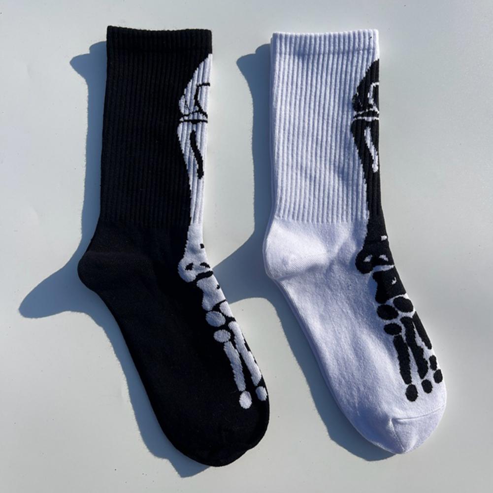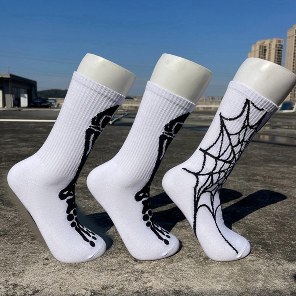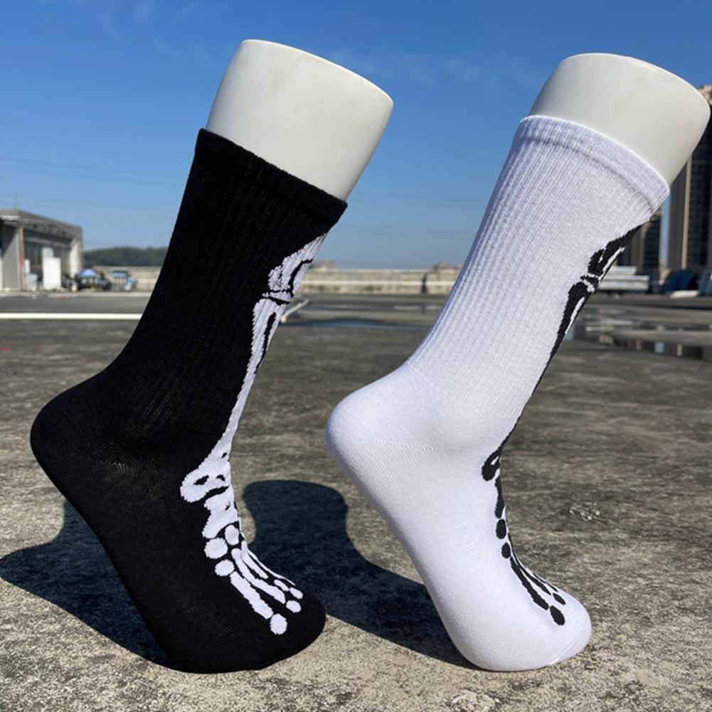 Носки с рисунком черепа, спортивные носки с принтом черепа и скелета на Хэллоуин, высокоэластичные, противоскользящие, унисекс, длинные для баскетбола