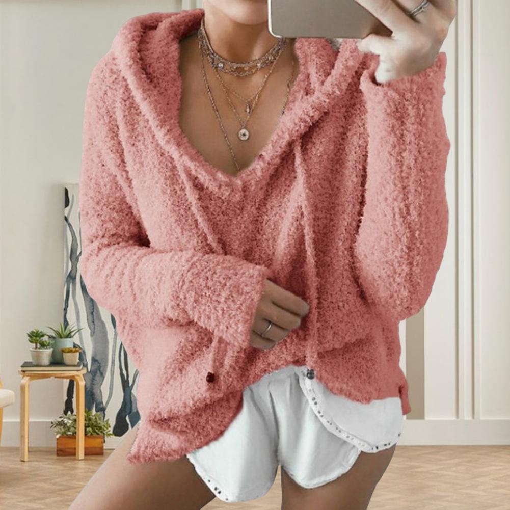 Осень-зима Женская толстовка с капюшоном на шнурке, толстая, пушистая, с длинными рукавами, однотонная, свободная, сохраняющая тепло, пуловер, повседневная одежда, спортивный топ