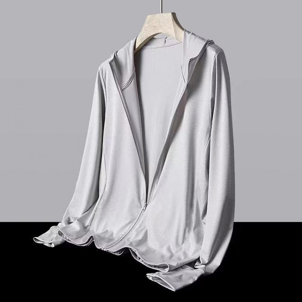 Мужская куртка от солнца с капюшоном и длинным рукавом, однотонная летняя тонкая куртка на молнии из ледяного шелка для рыбалки