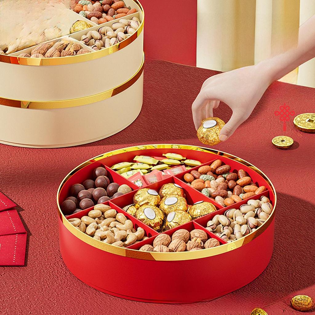 Поднос для закусок, круглый, с 7 обеденными решетками, сушеными орехами, конфетами, фруктами
