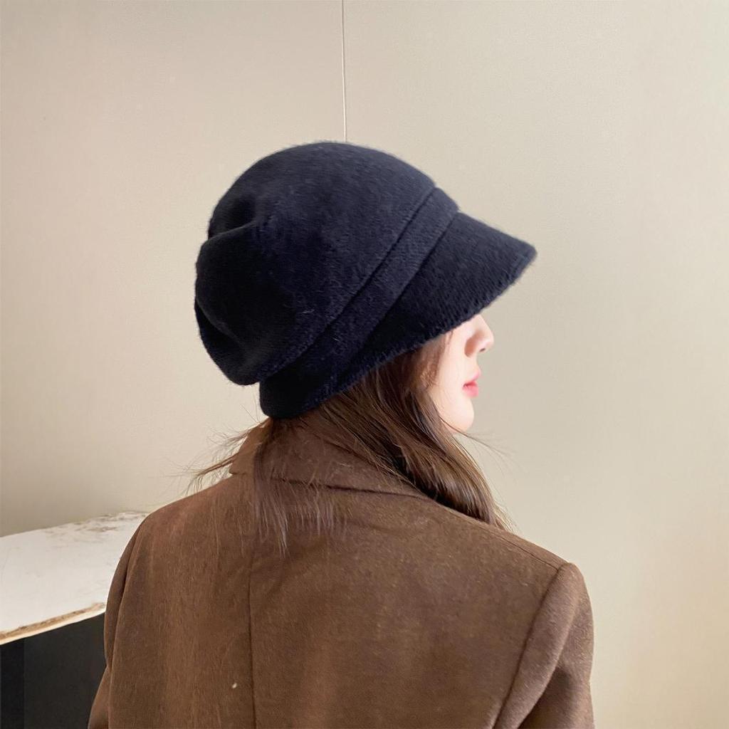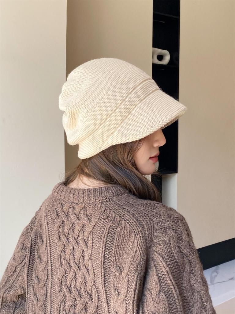 Женская шерстяная вязаная шапка-утконос в корейском стиле большой окружности - тепло на осень/зиму, дизайн в японском стиле