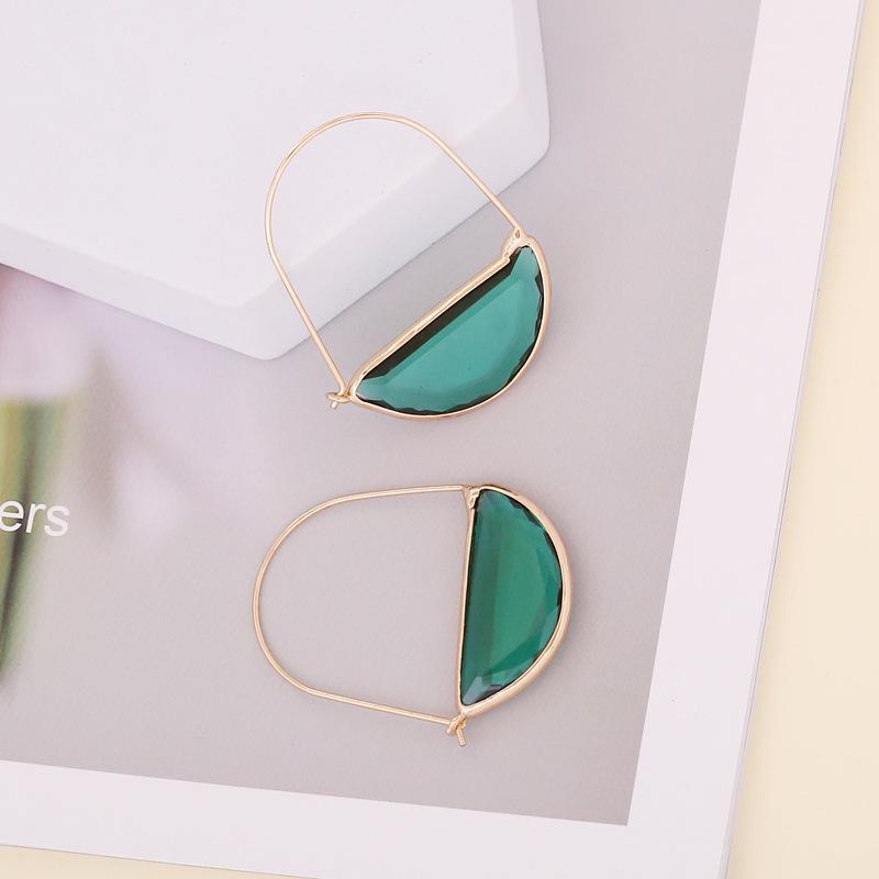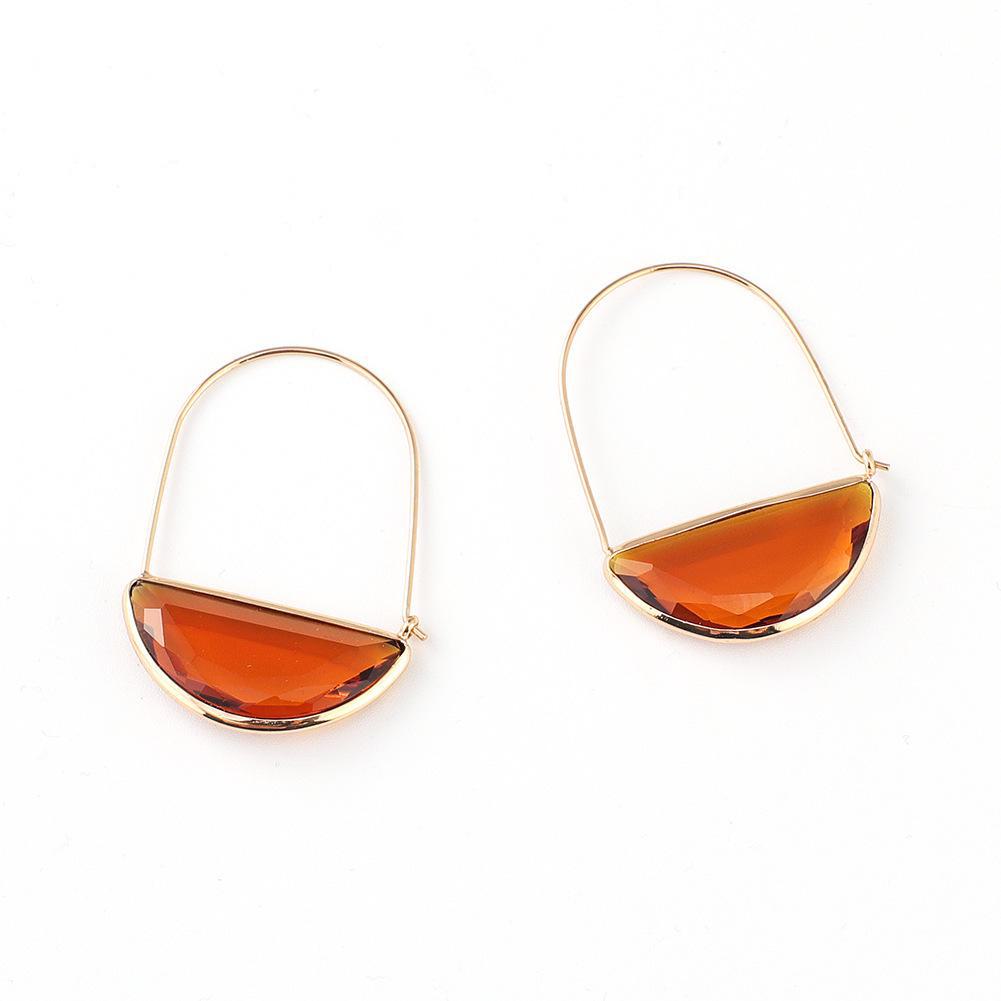 Европейские и американские геометрические серьги из стекла с медным покрытием — разноцветные, полукруглые, прозрачные кристаллы для женщин