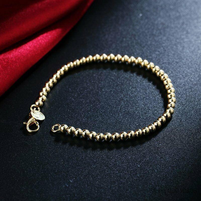 Классический женский браслет из серебра и золота с 4-миллиметровыми бусинами Будды — стильный и простой.