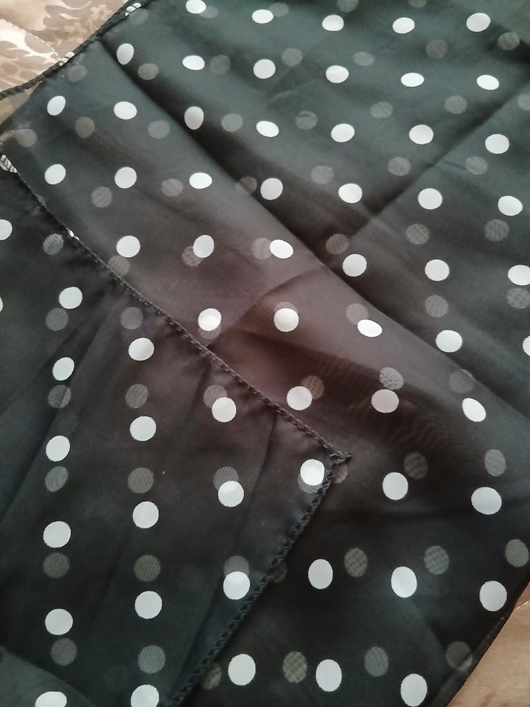 Заказывала в красный горошек, теперь в белый. Платок нравится, но хотелось бы побольше размером.