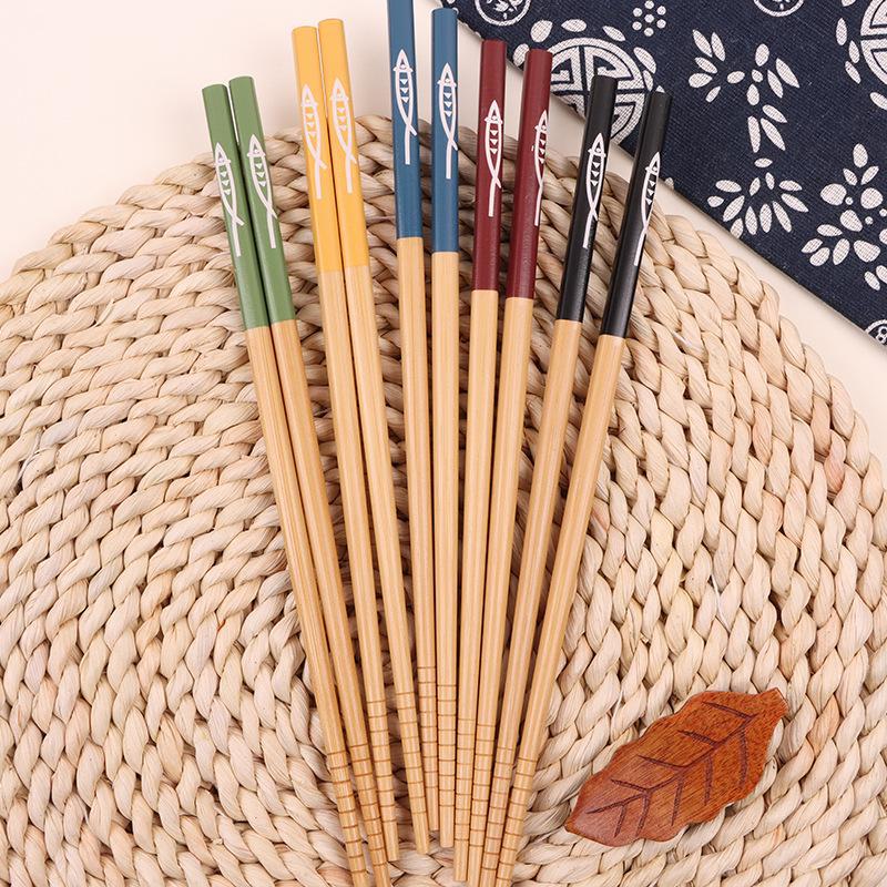 Набор бамбуковых палочек для японской сайры: Пятицветный, нескользящий, 22,5 см, для приготовления пищи и столовой.