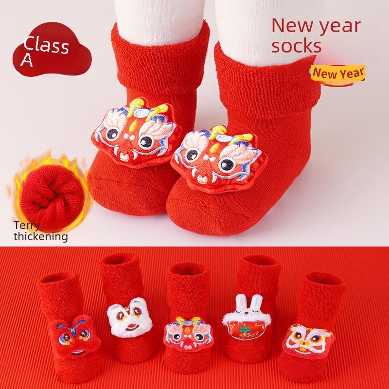 Мягкая утолщенная махровая обувь для новорожденных - ярко-красный цвет для осени/зимы (1 год)