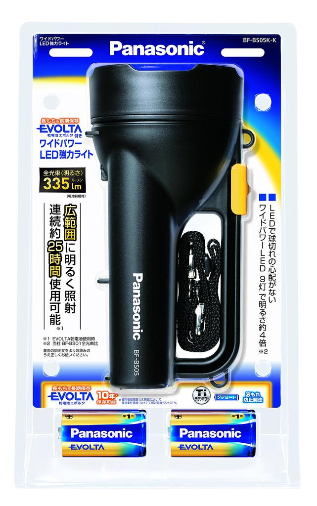 Panasonic Светодиодный фонарик большой мощности с сильным светом и сухой батареей Evolta BF-BS05K-K