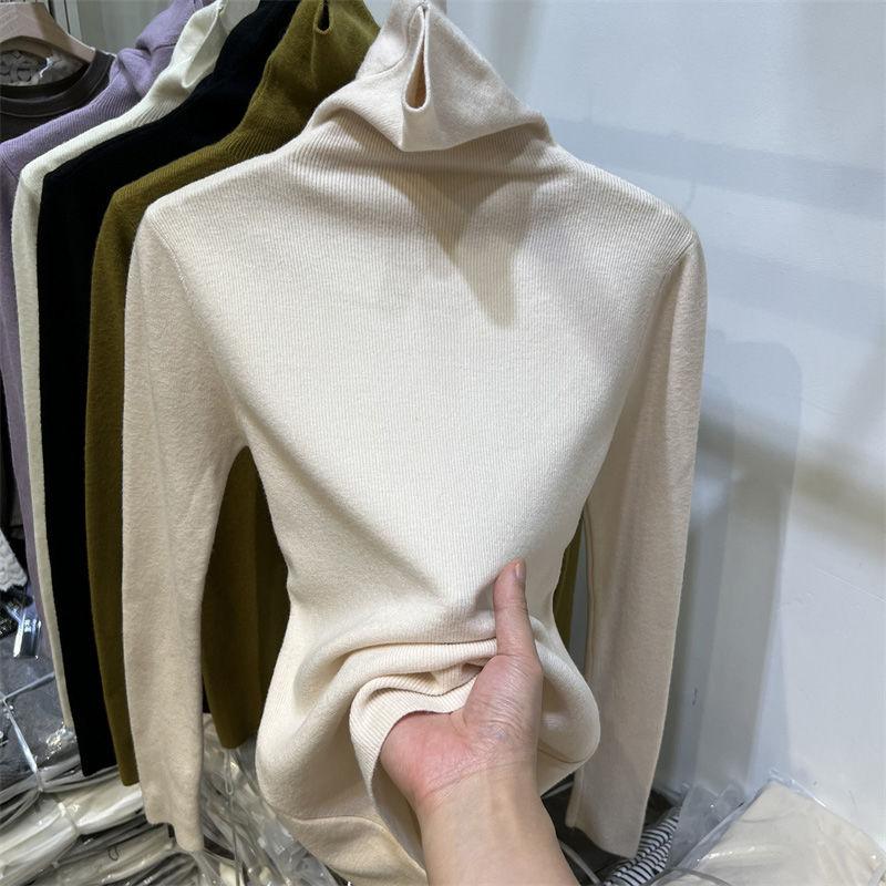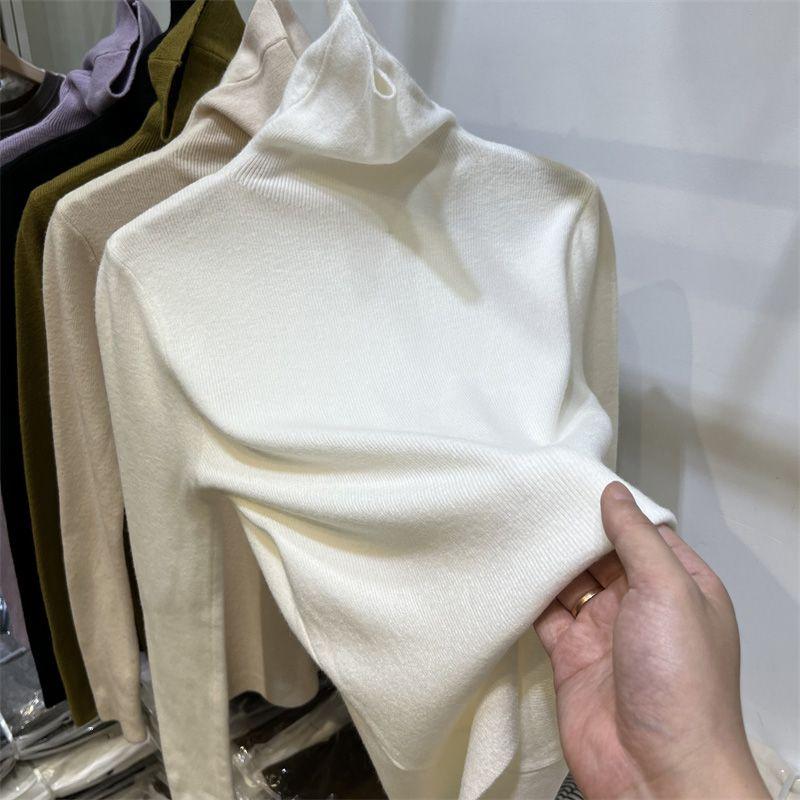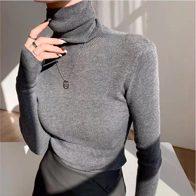 Однотонный элегантный тонкий свитер с высоким воротом для женщин, весна-осень, базовый слой, новые топы, повседневный вязаный свитер с длинными рукавами